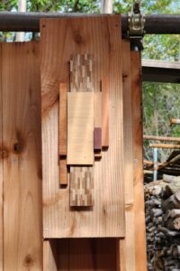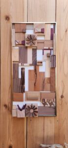 昨年4月より同居することとなった妹ー洋子がライフワークとしてきた箱根細工の端材(木片)による平面構成。