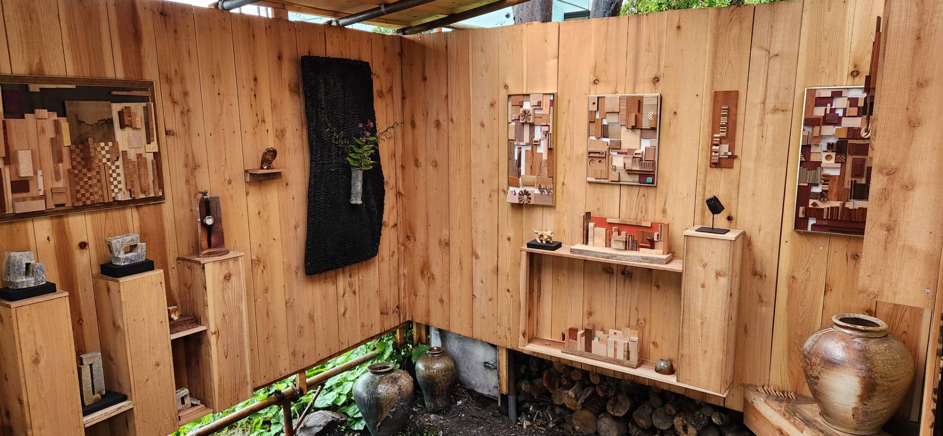 再建なったた庭のギャラリーに展示してみた。約10点ほど。